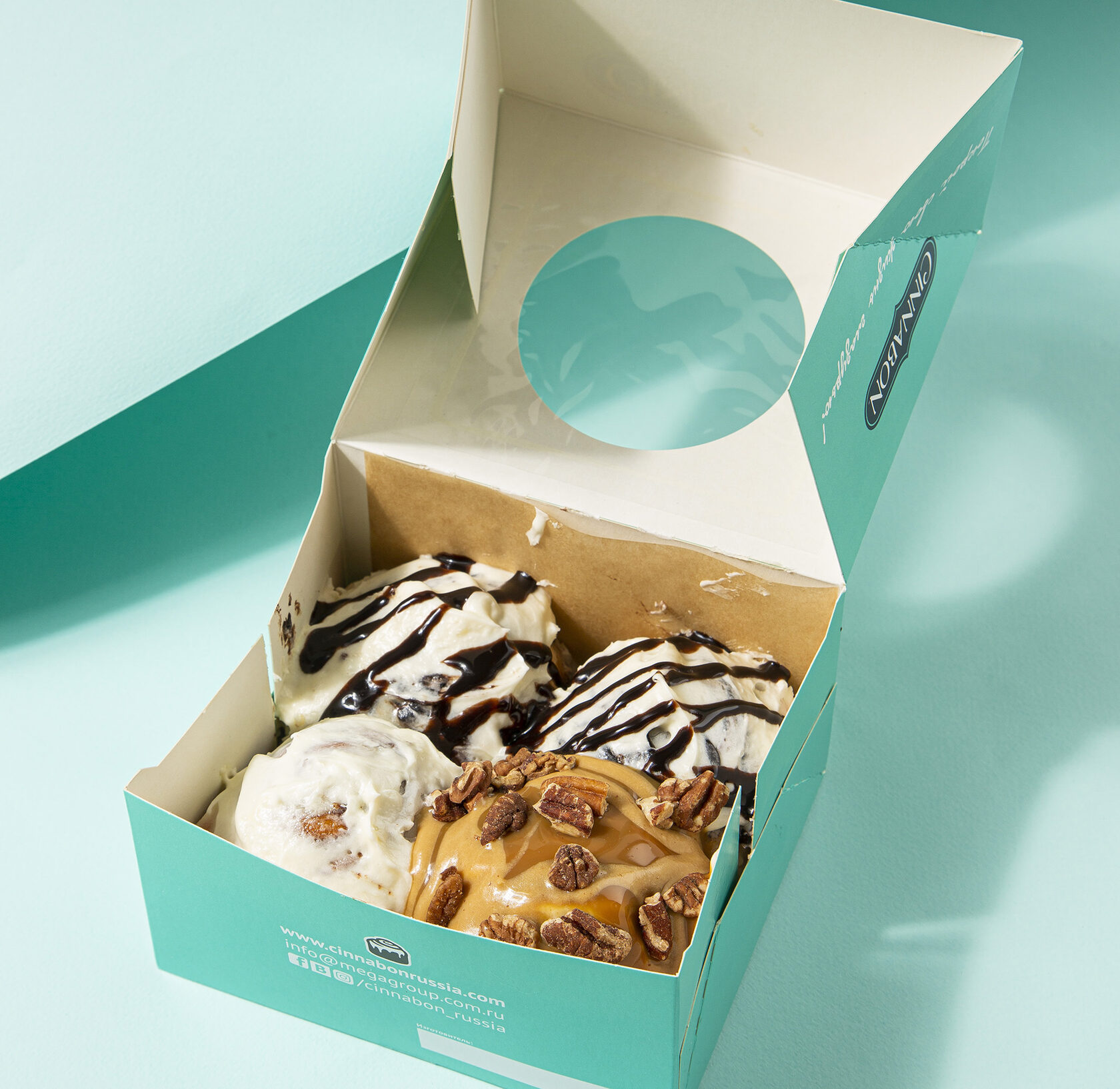 «Чудесный вкус Cinnabon® — по кусочку каждый раз, когда Вам этого захочется!»