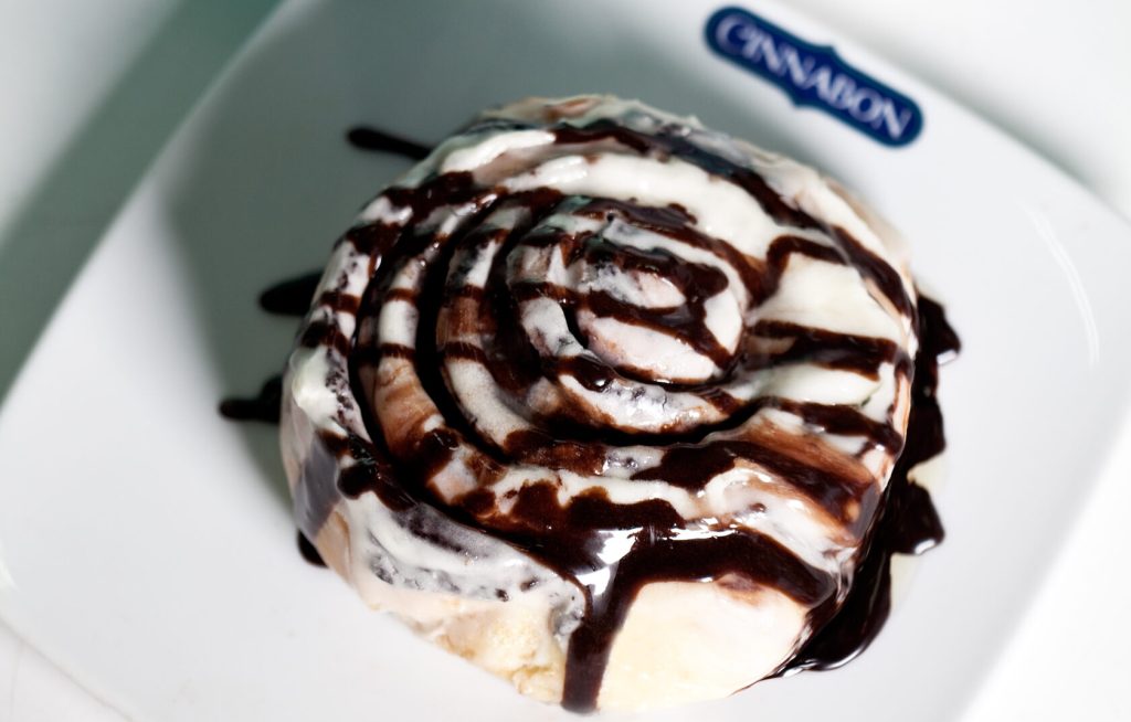 Это фирменный ролл с шоколадом, покрытые глазурью с шоколадным топпингом. Для изготовления данного ролла корица не используется.